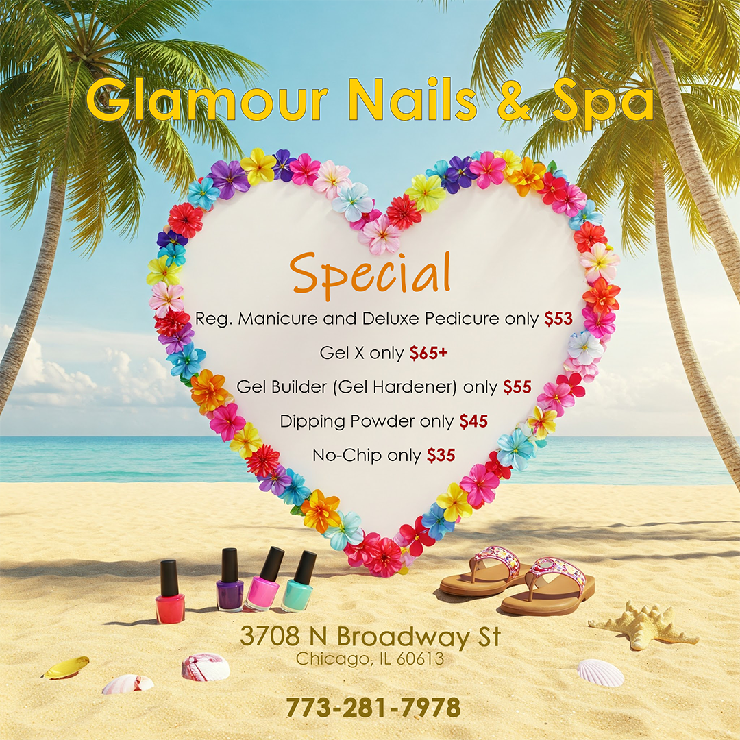 "Thank you so much, Glamour Nails, you have one of the best manicure and pedicure around, I give it 5 ."